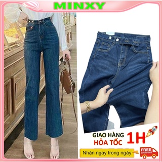Quần jean nữ ống đứng,chất bò co giãn tốt,cạp cao hack dáng -Minxy shop