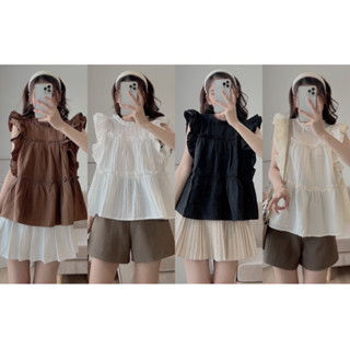 Áo sơ mi nữ A.483, Áo kiểu babydoll xếp tầng cổ tròn phối bèo dễ thương thời trang mùa hè - Shop Chấm Bi