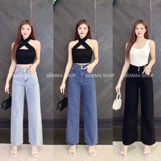 Quần jean ống rộng Gemma cạp cao, quần ống suông trơn lưng cao 3 màu siêu hot