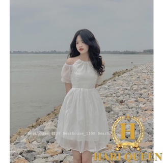 Váy trắng 2 lớp tiểu thư cổ yếm dây buộc HARIQUEEN