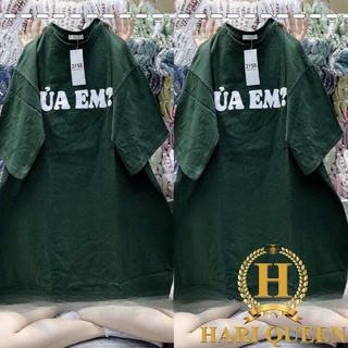 Áo thun tay lỡ chữ ỦA EM? chất cotton HARIQUEEN - Áo phông nam nữ unisex phong cách hàn quốc freesize form rộng 65kg