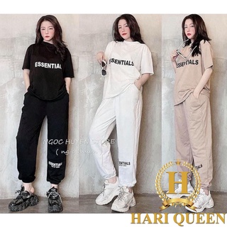 Sét áo phông tay lỡ Essen + quần bom chun gấu in chữ HARIQUEEN