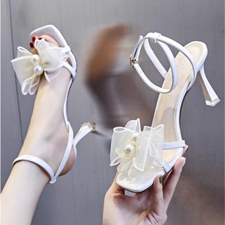 GIÀY SANDAL CAO GÓT ĐẾ NHỌN 7P QUAI ĐÍNH NGỌC TRAI THẮT NƠ HÀNG CÓ SẴN ( MÃ C199)