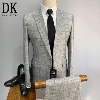 Bộ vest nam Hàn Quốc màu kẻ caro màu ghi xám sang trọng - DUKI STORE