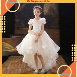 Váy thiết kế đầm công chúa bé gái váy bé gái thời trang cao cấp đuôi tôm sát nách màu trắng DBG085