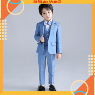 Bộ vest bé trai cao cấp kẻ xanh cho bé đi dự tiệc TQB055 TQB105 TQB106 gồm 3 chi tiết (áo ghile + áo vest + quần tây)