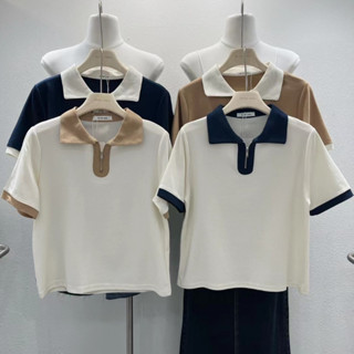 Áo thun cổ bẻ phối viền nữ tính , Áo polo cổ cách điệu tay bồng chất cotton xốp cao cấp thoáng mát M3049