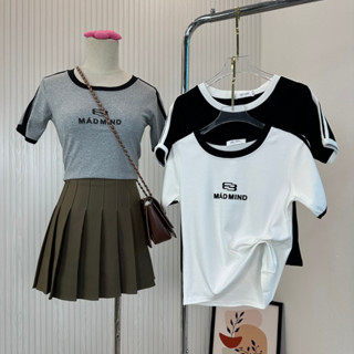 Áo thun Baby Tee phối 2 màu , Áo cổ tròn in chữ MAD MIND trẻ trung năng động QC