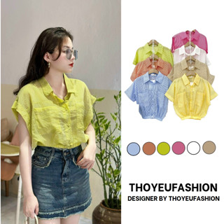 Áo sơ mi nữ cộc tay nhiều màu Thoyeufashion, Sơmi kẻ buộc eo tay hến đi biển đi chơi siêu xinh