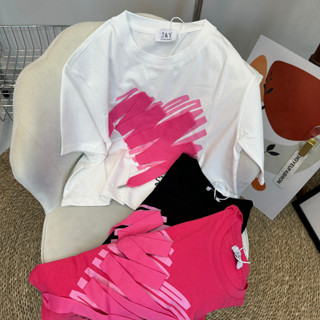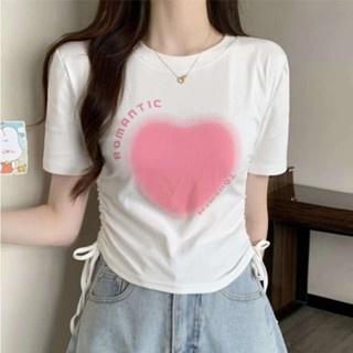 Áo thun nữ rút eo 2 bên in hình trái tim siêu xinh hàng Fresh Girl Quàng Châu chất cotton mềm mát nhẹ A201019