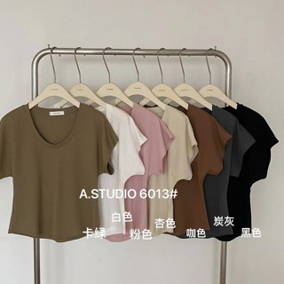 Áo thun trơn cổ U tay hến chất cotton chải kĩ mềm mát hàng Quảng Châu xịn A6013