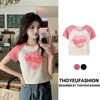 Áo Thun Croptop In Hoạ Tiết Chữ COLOMBIA Thoyeufashion Cổ Chữ V Tay Ngắn Phối Màu Phong Cách Retro Âu Mỹ M196