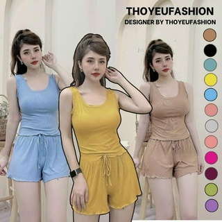 Bộ ngủ ba lỗ viền bèo thun tăm, Sét đồ ngủ sexxy co giãn chất tăm mát lạnh BNVB0023 - Thoyeufashion