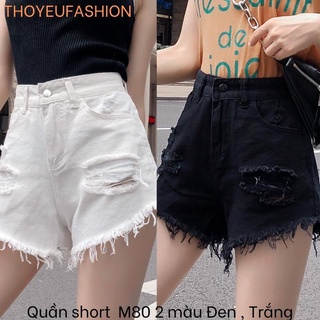 Quần Sooc Thô Trắng Đen Rách, Quần short Jean nữ cạp cao MS13826 (C2) MS80