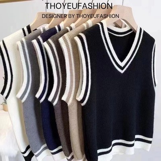 Áo Gile Len Nữ Ulzzang Hàn Quốc, Áo Ghile phối viền siêu xinh Freesize Cổ Chữ V Phong Cách Trẻ Trung M523