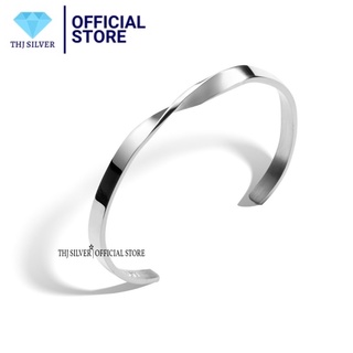 Vòng tay THJ- Vòng tay trơn dạng xoắn bạc ta nguyên chất , cá tính trẻ trung