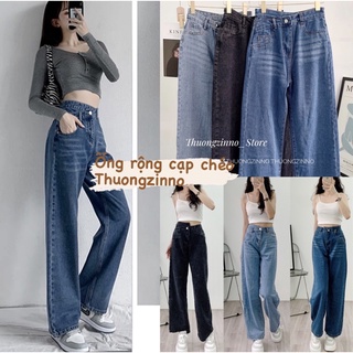 [Ảnh thật/Video]Quần Jean ống rộnh cạo chéo ba màu hottrend Quần bò ống rộng form to Quảng Châu