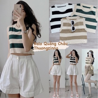 [Ảnh thật/Video]Áo mongtogi kẻ sát nách Richard hàng Quảng Cháu Áo len ba lỗ mặc siêu đẹp gọn dáng