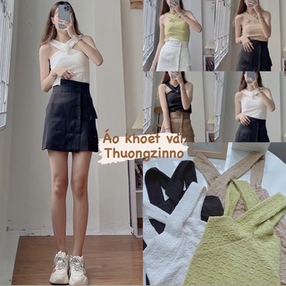 [Ảnh thật/Video]Áo xốp cổ chéo mát lim phong cách tiểu thư Áo yếm quàng cổ hở vai quyến rũ