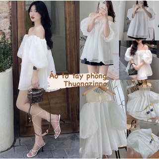 [Ảnh thật/Video] Áo Croptop Dingg Mới cổ đức Chất Chiffon Tay Phồng Thiết Kế Ngọt Ngào Cho Phái Nữ