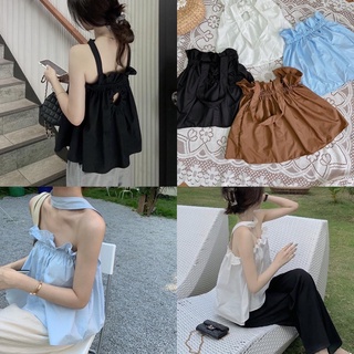 [Ảnh thật/Video] Áo Babydoll yếm thiết kế choàng cổ Chocker Quyến rũ Áo nhún bèo Không Tay Phong Cách Hàn Quốc