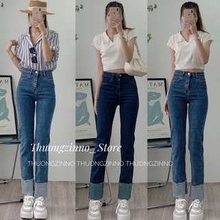 [Hàng chất lượng]Quần jean ống đứng gập gấu to thiết kế Hàn