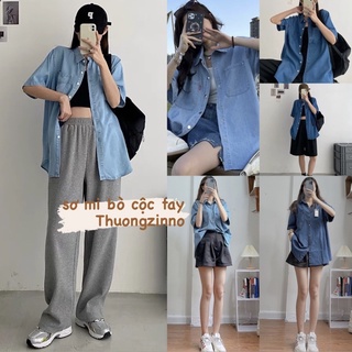 [Ảnh thật/Video]Áo sơ mi bò cộc tay dáng rộng rãi (Hàng Loại 1)