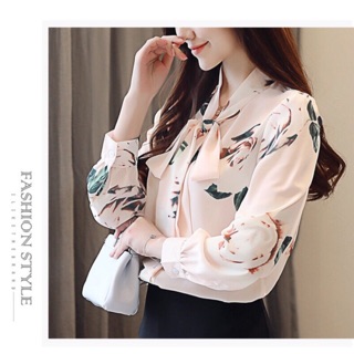 Áo sơ mi công sở nữ hoa hồng cổ nơ