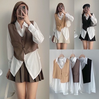 [Hàng sẵn] SET ÁO SƠ MI PHỐI GILE MAY LIỀN CHẤT VẢI MỀM MỊN KHÔNG NHĂN