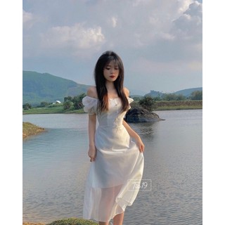 Váy hai dây trắng trễ vai Tia19. Đầm hai dây trễ vai