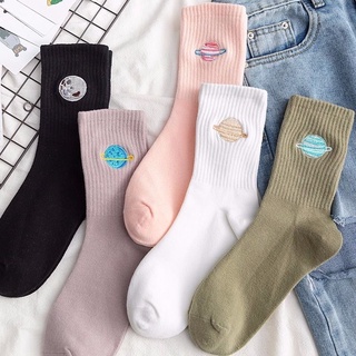 TIAN TIAN T003 Vớ Cotton Cổ Cao Thêu Họa Tiết Hành Tinh Hoạt Hình Dễ Thương Thời Trang Nhật Hàn Cao Cấp