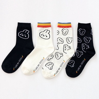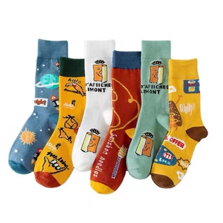 TIAN TIAN T125 Tất nữ cao cổ Vớ cổ vừa in chữ hoạt hình phong cách Harajuku Hàn Quốc cao cấp