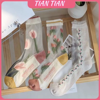TIAN TIAN T168 Vớ Lưới Pha Lê Trong Suốt Siêu Mỏng Thoáng Khí Thoải Mái Họa Tiết Hoa Tulip Phong Cách Hàn Quốc Thời Trang Xuân Hè Mới Cho Nữ