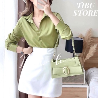 Set bộ nữ áo sơ mi kèm chân váy TIBU, Set Chân Váy 2022 Vải Đũi Xước Mềm Mát Chân Váy Chun Có Lót Freesize