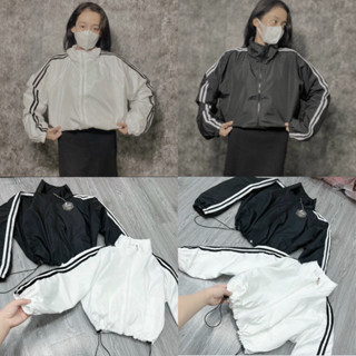 Áo khoác dù nữ 2 lớp dáng lửng croptop trơn phối sọc form đẹp trẻ trung KC24