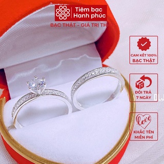 Nhẫn đôi bạc đính đá khắc tên miễn phí TSJC02 - Tiệm bạc hạnh phúc