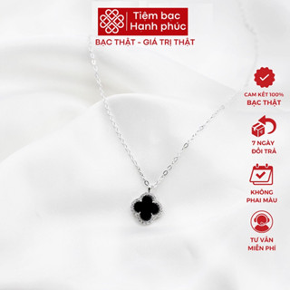 Dây chuyền nữ bạc ta 925 hình cỏ 4 lá đen may mắn, vòng cổ bạc thật - Mã TSJD18