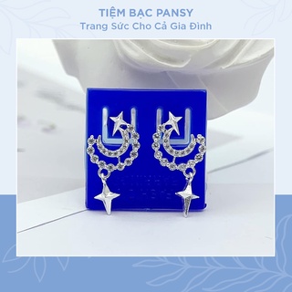 Bông tai bạc nữ PANSY mặt trăng khuyết nạm đá xinh xắn - Khuyên tai bạc ta hình trăng sao may mắn