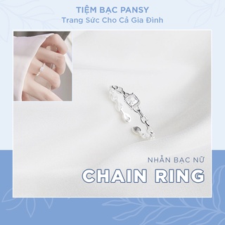 Nhẫn bạc nữ PANSY dạng dây xích hở freesize đính đá hình vuông, nhẫn xoắn bạc ta điều chỉnh được kích cỡ