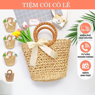 Túi cói giỏ cói quai gỗ kiểu đan độc đáo thời trang đi biển hè 2023-Tiệm Cói Cô Lê