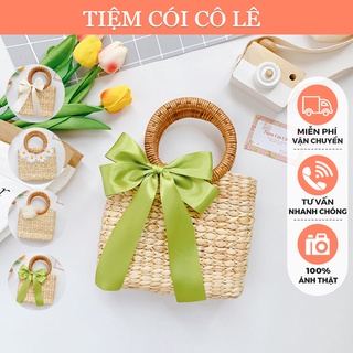 Túi lục bình quai mây kiểu đan thắt nơ xinh xắn, làn xách tay phụ kiện đi biển, chụp ảnh - Tiệm Cói Cô Lê