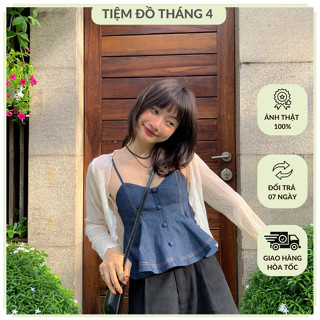 Áo Hai Dây Jeans Hai Lớp Dày Dặn Đứng Form Năng Động TIỆM ĐỒ THÁNG 4 MOLA TOP