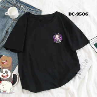 Áo thun đen nam nữ tay lỡ Unisex Oversize form rộng hình logo cô bé