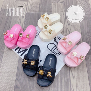 Dép Lê Quai Ngang Nơ Gấu Đế Cao Siêu Nhẹ Sang Chảnh Cho Bé Gái 2-5 Tuổi K108