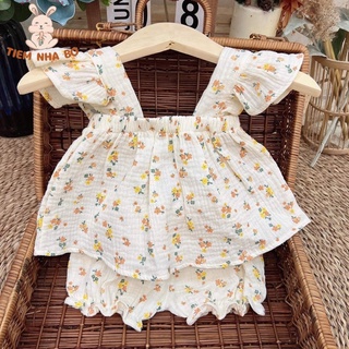 Đồ bộ cộc tay cánh tiên cho bé gái vải Xô Muslin size 5-15kg Tiệm Nhà Bơ