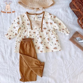 Quần Áo Thu Đông Bé Gái, Đồ Bộ Dài Tay Cho Bé Phối Ren Điệu Đà Tiểu Thư Tiệm Nhà Bơ