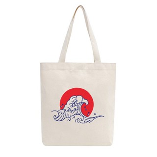 Túi tote vải mộc Tiệm nhà Pony dây kéo in hình wave and sun PM16
