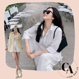 Đầm nữ xinh xắn váy sơmi kẻ xốp tay lỡ dáng dài ulzzang hàn quốc (ảnh thật/có sẵn) Tiệm Nhà Cá