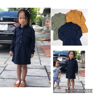 Váy bé gái Kiabi 3-9 tuổi Váy kaki túi ngực phong cách Pháp 0921