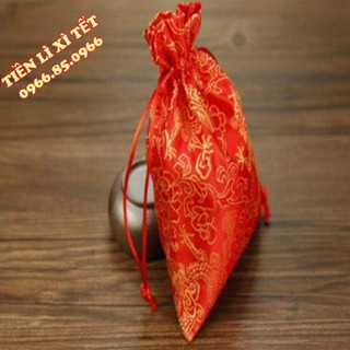 Combo 10 Túi gấm đỏ thiêu Long Phụng, đựng trang sức, đồng xu
